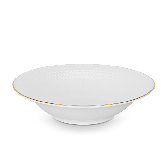 Компания Fissman представляет коллекцию посуды NOEMI из настоящего китайского костяного фарфора. Предметы выполнены в классическом стиле, в белоснежном цвете с золотой окантовкой и украшены геометрическим узором. Первозданный белый цвет подчеркивает красоту форм, он подойдет для любого интерьера, стиля сервировки и повода. Глазурованная поверхность эффектно смотрится, отличается высокой прочностью и долговечностью. На ней отсутствуют вкрапления и поры. Предметы легко моются, не впитывают запахи и загрязнения. Каждый из них упакован в красочную коробку и будет отличным подарком. В серию входят: заварочный чайник, сливочник, сахарница, чайные пары, наборы плоских и глубоких тарелок. Посуду не рекомендуется ставить в микроволновую печь или мыть в посудомоечной машине.