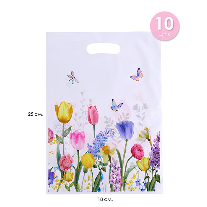 Набор пакетов подарочных 10 штук "ЦВЕТЫ", 25*18 см.