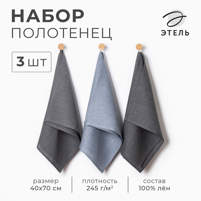 Совместные покупки Пермь Товары для дома и дачи Прочий домашний текстиль — Набор полотенец д/кухни из 100% льна 245г/м2 40х70(3шт) - Графит/Серо-голубой
