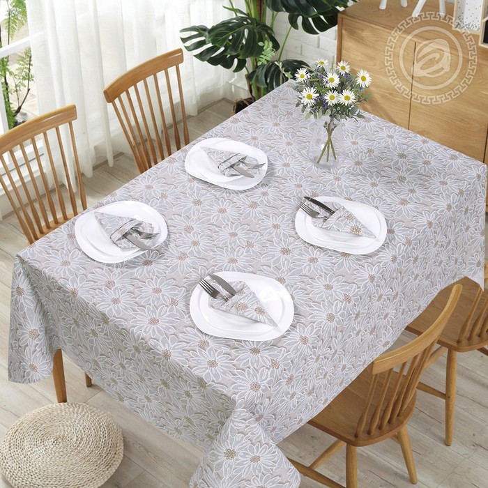 Размеры: Скатерть: 1шт.-180*145; Салфетка: 6шт-35*35, Скатерть: 1шт.-220*145; Салфетка: 6шт-35*35