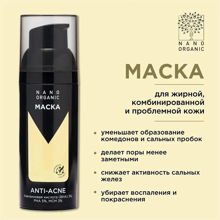 Совместные покупки Пермь Косметика и парфюмерия Маски для лица — NANO ORGANIC Маска д/жирной,комбинированной и проблемной кожи лица Anti-Acne