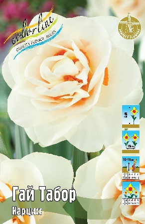 Очень крупный, махровый. Цветаслоновой кости, с золотисто-оранжевой многослойной махровой коронкой