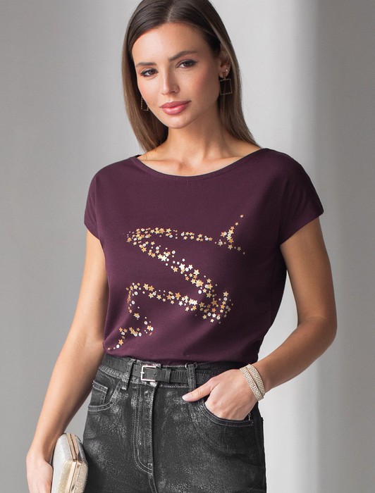 Эта нарядная футболка подходит для создания образа на каждый день и идеально подойдет на выход. Модель не мнется, что делает ее практичным вариантом для активных женщин, которые ценят стиль и удобство.
