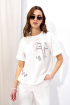 22.03 Vilatte Футболка с принтом свободная эластичная из премиального хлопка D4