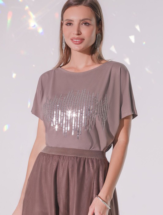 Эта нарядная футболка подходит для создания образа на каждый день и идеально подойдет на выход. Модель не мнется, что делает ее практичным вариантом для активных женщин, которые ценят стиль и удобство.