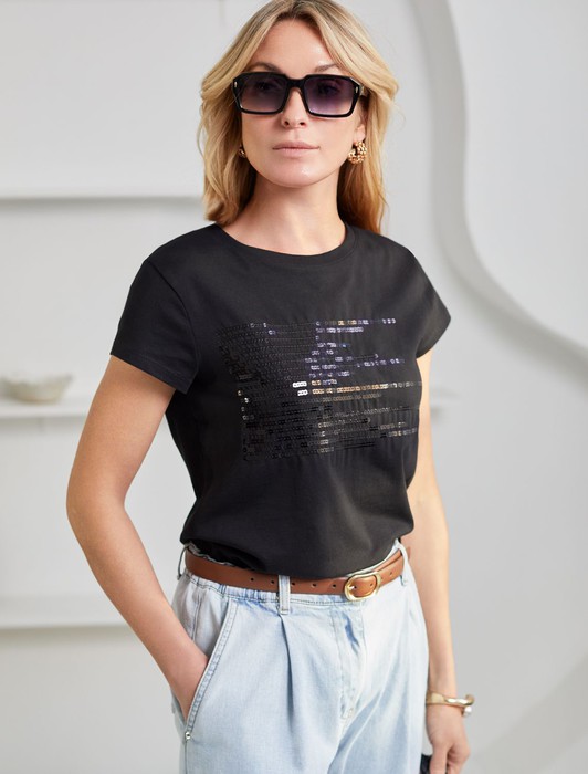 Нарядная футболка с принтом пайетками