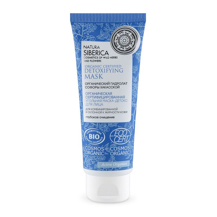 Органическая сертифицированная угольная маска-детокс для лица Natura Siberica Cosmos для комбинированной и склонной к жирности кожи глубоко очищает и сужает поры, способствует выведению токсинов. Ее формула, обогащенная высокоэффективными экстрактами сибирских растений, обладает тонизирующим и освежающим действием, выравнивает тон кожи.