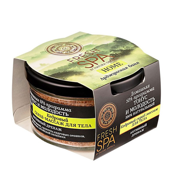 Sodium Chloride (соль), Pinus Sibirica Seed Cake (свежий кедровый жмых), Pinus Sibirica Shell Powder (абразив скорлупы кедрового ореха), Hippophae Rhamnoides Seed (косточки алтайской облепихи), Cedrus Deodara Wood Oil (эфирное масло кедра), Pinus Sibirica Seed OilWH* (масло сибирской сосны), Pinus Pumila Needle ExtractWH (экстракт кедрового стланика), Larix Sibirica Needle ExtractWH (экстракт лиственницы сибирской), Linum Usitatissimum Seed Oil* (льняное масло), Triticum Vulgare Germ Oil* (масло зародышей пшеницы).