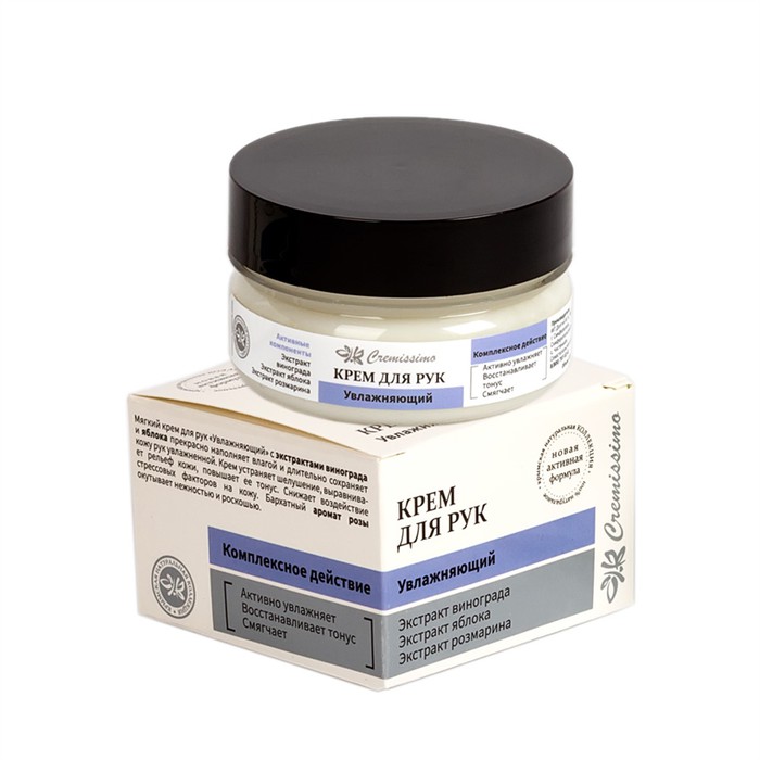 Мягкий крем для рук «Увлажняющий» с экстрактами винограда и яблока прекрасно наполняет влагой и длительно сохраняет кожу рук увлажненной. Крем устраняет шелушение, выравнивает рельеф кожи, повышает ее тонус. Снижает воздействие стрессовых факторов на кожу. Бархатный аромат розы окутывает нежностью и роскошью.