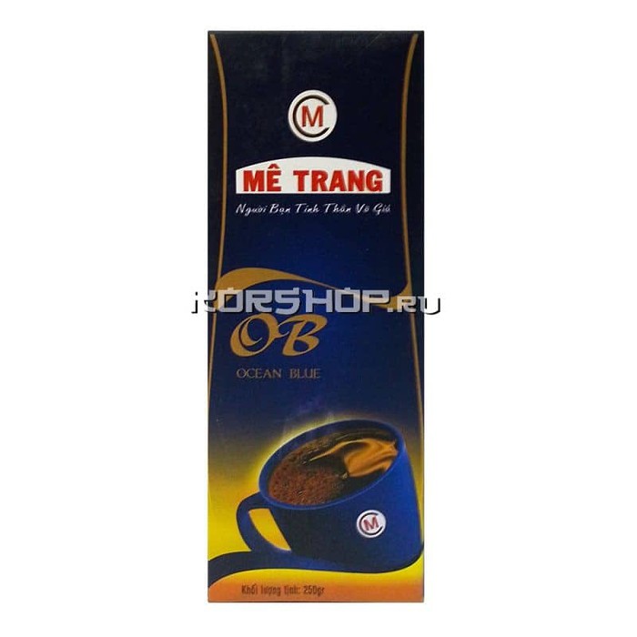 Вьетнамский кофе Me Trang Ocean Blue (Мечанг Оушен Блю) – это элитный напиток с благородным вкусом и лёгким, нежным ароматом, вызывающим приятные ассоциации с тёплым тропическим побережьем. Он сочетает в себе всё лучшее, что предлагает своим клиентам всемирно известная компания Мечанг и понравится истинным ценителям хорошего кофе. Оушен блю - это специально подобранная композиция арабики и робусты в идеальной пропорции, что было оценено многочисленными покупателями всего мира. Вьетнам – это один из крупнейших в мире производителей и экспортёров кофейных зёрен и занимает почётное второе место после Бразилии. Вьетнамский кофе отличается от любого другого своим насыщенным, терпким вкусом и приятной тягучестью. Чтобы заварить молотый кофе от «Мечанг» , Вам понадобится турка, френч-пресс, кофе-машина или . Необходимо засыпать 3 ложки кофейной смеси и налить небольшое количество воды, чтобы как следует пропитать её влагой. После этого необходимо добавить оставшуюся воду и подавать напиток с мороженным, молоком или сливками по вкусу. Купить молотый кофе Ocean Blue (Оушен блу) от вьетнамской фирмы Me Trang и другие эксклюзивные товары из Азии по отличным ценам Вы можете в интернет-магазине KorShop.ru . Доставка на дом возможна для жителей Москвы и области. В другие города отправляем Почтой России. Состав: робуста, арабика, натуральный ароматизатор. Средняя степень обжарки. Содержит примерно 1% кофеина. Хранить при невысокой влажности и вдали от солнца.