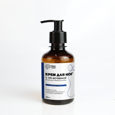 Крем для ног с мочевиной «NeuroFood» бережно устраняет огрубевшие участки кожи стоп, сухие застарелые мозоли, трещины. Кожа становится мягкой, гладкой и увлажнённой. Комплекс жирных масел какао, манго и авокадо восстанавливает защитный липидный барьер, препятствует потере влаги и появлению сухости. Мочевина обеспечивает размягчающий эффект, решает проблемы загрубевшей кожи и гиперкератоза, предупреждает шелушение, предотвращает образование избыточного ороговения, а также защищает кожу от образования трещин и мозолей. Ценные масла в сочетании с молочной кислотой ценятся за способности предупреждать грибковые поражения пальцев и ногтей на ногах, тем самым не допуская образование неприятного запаха.