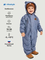 Комбинезон МЕДВЕЖОНОК из мембранной ткани 5000/5000 с водо- грязеотталкивающей технологией TEFLON.Мембранная ткань - это непродуваемый и водонепроницаемый материал, который надежно защитит от ветра и влаги. Благодаря дышащим свойствам мембраны ребенку будет комфортно в любую погоду, и он не вспотеет.  Мембрана в сочетании с утеплителем сохранит тепло во время прогулок. Хлопковая подкладка обеспечит повышенный комфорт для ребенка.Функционал: - длинная центральная застежка обеспечивает легкое одевание малыша, - карман на молнии, - ветрозащитная планка, - воротник стойка и несъемный капюшон, - кулиса для регулировки объема по капюшону, - резинка на спинке для создания силуэта.  Мы все продумали до мелочей, поэтому модель дополнительно оснащена:- эластичными резинками по низу рукавов и брючин, - силиконовыми штрипками, - светоотражающими элементами для безопасности ребенка в темное время суток.   Комфортная температура эксплуатации от  -5°C до +10°С.Рекомендуем приобрести комплектом аксессуары, обувь и другие вещи из капсулы в карточке товара, которые отлично сочетаются с изделиями коллекции.