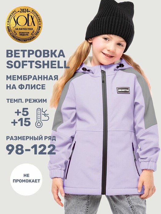 Ветровка для девочки ТРЕКИНГ из Softshell идеально подходит активным детям на прогулках, которые много двигаются и не сидят на месте. Softshell это инновационный материал нового поколения, внешний слой которого защищает от влаги и ветра, внутренний слой из флиса сохраняет тепло и отводит лишнюю влагу, а промежуточный мембранный слой имеет хорошую паропроницаемость и позволяет коже дышать. Softshell приятный на ощупь, легкий и эластичный материал, не сковывающий движения ребенка.Функционал: - центральная застежка и карманы на молнии, - ветрозащитная планка, - капюшон с кулисой для регулировки объема. Мы все продумали до мелочей, поэтому модель оснащена кулисой по низу для регулировки объема изделия и манжетами на резинке для защиты от проникновения холодного ветра.Когда носить? Весной и осенью с теплой поддевой, а также прохладным летом в качестве ветровки на футболку.Температурный режим от +5°С до +15°С.Уход за изделиями из Softshell аналогичен уходу за изделиями из мембранной ткани и достаточно прост — большинство загрязнений легко удаляются влажной салфеткой или щеткой с водой. Возможна машинная стирка при 30°С с использованием жидких средств для мембранной ткани. Отжим на минимальных оборотах, сушка на вешалке в расправленном виде.