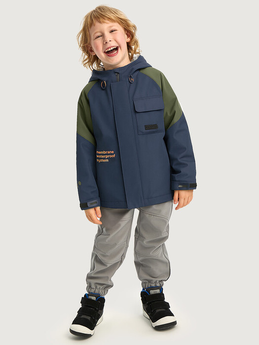 Ветровка ПАРКУР из мембранной ткани 5000/5000.Мембранная ткань - это непродуваемый и водонепроницаемый материал, который надежно защищает от ветра и влаги. Благодаря дышащим свойствам мембраны ребенку будет комфортно в любую погоду, и он не вспотеет. Флисовая подкладка отводит влагу и имеет хорошие теплоизоляционные свойства.Функционал: - центральная застежка на молнии, - ветрозащитная планка, - накладной карман с клапаном на липучках, - прорезные карманы, - капюшон с кулисой для регулировки объема. В рукавах гладкая подкладка для удобства продевания рук.  Мы все продумали до мелочей, поэтому модель дополнительно оснащена:- манжетами на резинке с дополнительной регулировкой по длине - внутренняя сторона манжеты из флиса,- кулисой по низу для регулировки объема.Комфортная температура эксплуатации от +5°С до +15°С. Рекомендуем приобрести комплектом аксессуары, обувь и другие вещи из капсулы в карточке товара, которые отлично сочетаются с изделиями коллекции.