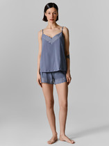 Сорочка женская из трикотажного полотна «кулирка» с набивным рисунком, расширенная книзу, без рукавов, с расширенной, углубленной горловиной овальной формы и притачной кокеткой по переду. Срезы пройм и горловины, а также шов притачивания кокетки, обработаны фасонной эластичной тесьмой с кружевным краем. Низ изделия обработан узкой обметочной строчкой.