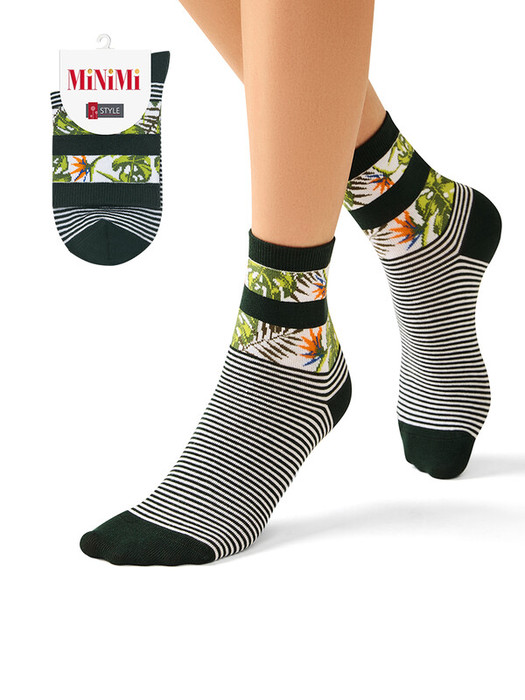 Женские носки MINIMI STYLE 4604 с модным тропическим рисунком. В составе - высококачественный хлопок, который позволяет коже дышать, отлично впитывает влагу и подходит даже для самой чувствительной кожи, и эластан, который обеспечивает превосходное облегание. Удобная резинка и кеттельный (плоский) шов на мыске создают дополнительный комфорт.