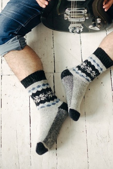 Шерстяные мужские носки с вывязанным орнаментом. Средняя высота, широкая резинка