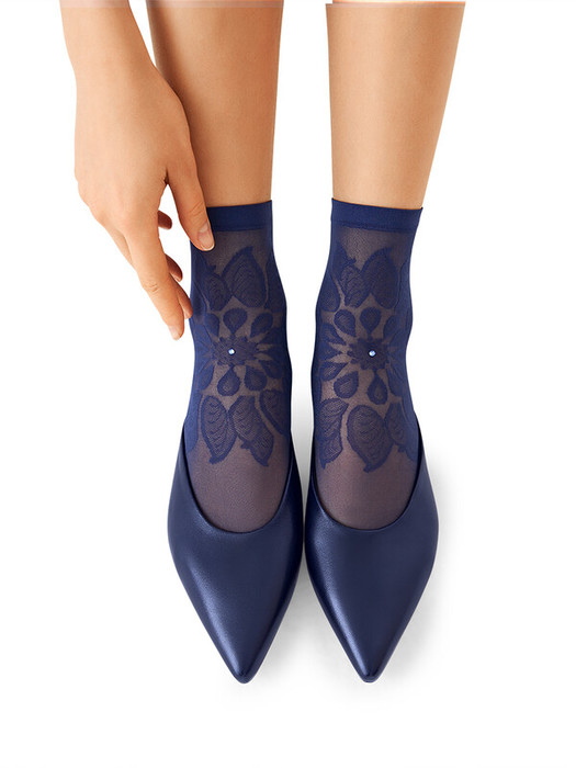 Женские фантазийные носки SiSi c ажурным кружевным рисунком и стразами. Комфортно ощущаются на ноге в течение всего дня и превосходно облегают, благодаря эластану в составе и удобной резинке. Невидимый усиленный мысок обеспечивает дополнительную прочность.