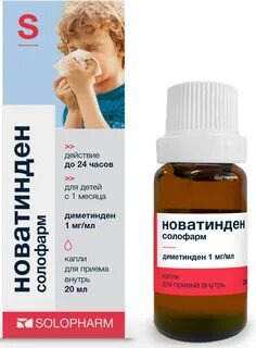 Розничная цена от 430. Препарат Новатинден солофарм показан к применению у взрослых и детей в возрасте от 1 месяца. • Аллергические заболевания: крапивница, сенная лихорадка, круглогодичный аллергический ринит, ангионевротический отек, пищевая или лекарственная аллергия. • Кожный зуд различного происхождения: экзема, зудящие дерматозы, в том числе атопический дерматит, корь, краснуха, ветряная оспа, укусы насекомых. • Профилактика аллергических реакций во время проведения гипосенсибилизирующей терапии.