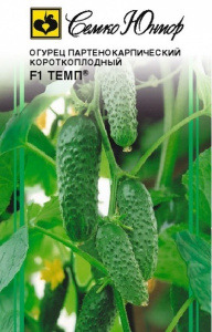 Гибрид Темп среднеспелый. От всходов до начала плодоношения 42-44 дня. Предназначен для производства пикулей (длина зеленца 3-5 см). Плод генетически без горечи, длиной 5-7 см, диаметром 1,6-2,0 см. Массой 70-80 г, с пучковым плодоношением, цилиндрический, бугорчатый, белошипый, зеленый с продольными полосами, не перерастает. Жаростойкий. В одном узле формирует 3-5 плодов. Вкусовые качества отличные. Темп F1 пригоден для засола и консервирования. Транспортабельность хорошая. Устойчив к кладоспориозу и мучнистой росе, относительно к ВОМ-1 и пероноспорозу. Общая урожайность 11-15 кг/м2, при сборе пикулей - 5-7 кг/м2.
