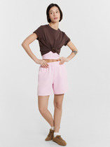 Женские свободные шорты средней длины с боковыми карманами и поясом на резинке.
