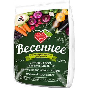 Весеннее – универсальное гранулированное комплексное органоминеральное удобрение. Благодаря специальной формуле содержит все вещества, необходимые растениям весной: