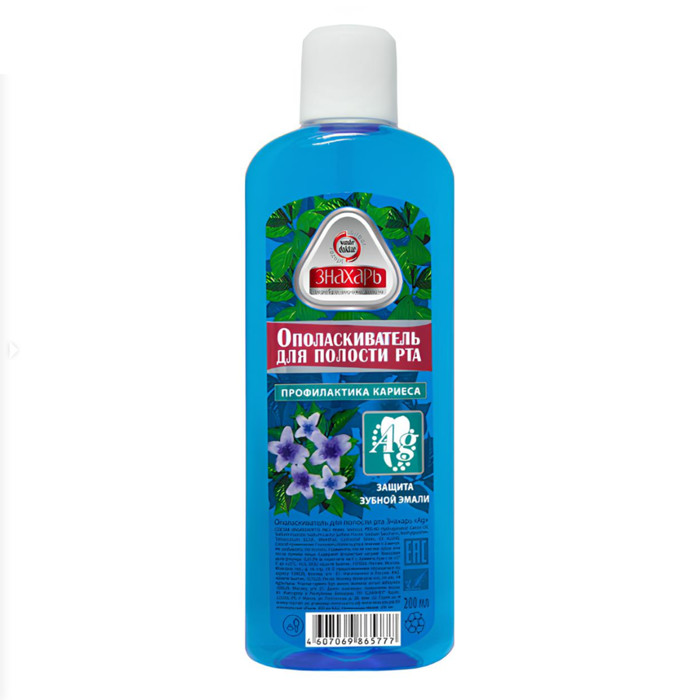 Ополаскиватель для рта с серебром защищает зубную эмаль от повреждающего действия бактерий, препятствует образованию кариеса, зубного налета