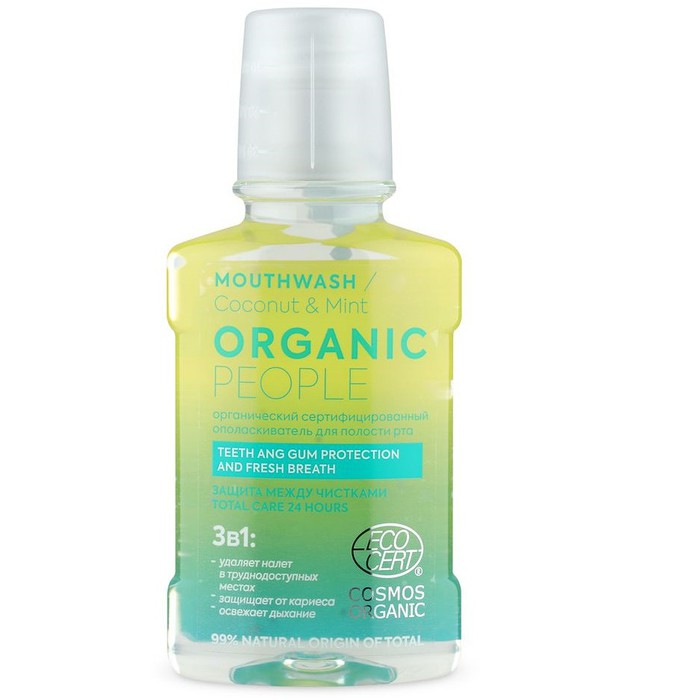 Органический сертифицированный ополаскиватель для полости рта ORGANIC PEOPLE абсолютно безопасен, так как не содержит опасных для здоровья химических компонентов: SLS, SLES, парабенов, хлоргексидина, диоксида титана, искусственных красителей и ароматизаторов.