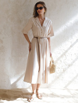 НМ Tie-belt shirt dress White/Green patterned