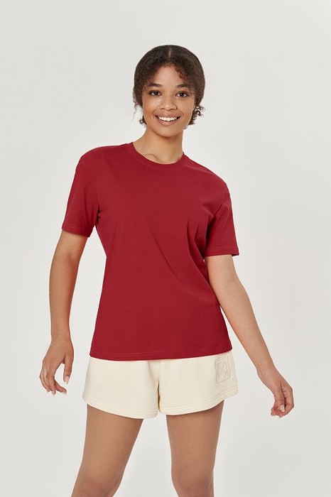 Футболка полупрелигающего силуэта, втачной рукав, горловина окантована рибаной