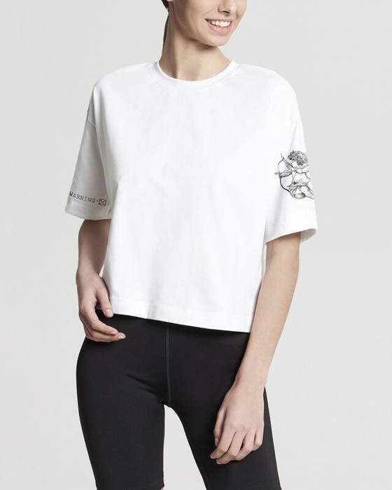 Укороченная футболка CROP, спущенное плечо. горловина из рибаны. Укрепление плечевых швов и шва горловины бейкой из основной ткани.