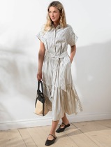 22.03 Vilatte Платье в полоску А-силуэта с поясом из легкого хлопкового поплина