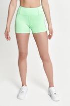 Шорты спортивные с завышенным двойным поясом  и сборкой на заднем шве ,создающей эффект объема.
