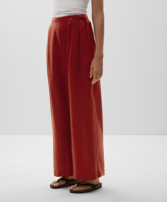 oysho Dunkelrot Weite, gerade geschnittene Hose mit Wickeloptik aus 100 % Leinen