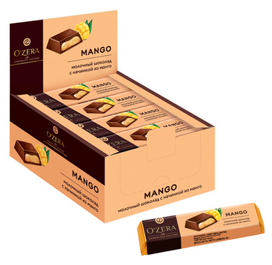 Шоколадный батончик с желейной начинкой, обогащенной натуральными соком и пюре тропического манго.