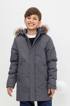 Универсальное пальто максимально адаптировано для ребенка. Главным украшением модели служит застежка сложной конструкции, большую часть которой закрывает ветрозащитный клапан. Привлекаю внимание также оригинально оформленные карманы. Слегка укороченный перед модели и разрезы в боковых швах облегчают движение ребенка. Для этой модели использована ветронепродуваемая ткань ярких расцветок и наполнитель ТермМакс.