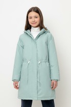 Стеганое пальто с модным принтом понравится девочкам любого возраста. Комбинация тканей различного состава и фактуры, подобранных в одной цветовой гамме делает эту модель удивительно эффектной. Дополнительным украшением служат большие накладные карманы, боковые карманы на молниях и объемный капюшон. Пояс и низ изделия затягиваются на кулиску. Длина рукава регулируется отворотом.