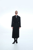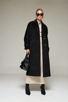 Пальто приталенного силуэта из экокожи. Центральная застежка и карманы на молнии ( молния металл серебро № 7). Воротник стойка, съемная пелерина (мех-кролик, расшитый натуральной кожей, окрас под шиншиллу) , пристегивающаяся на молнии. Съемный завязывающийся пояс. Длина изделия по спинке 92 см, длина рукава 63.5 см утеплитель холкон (см.описание), плотность 150.