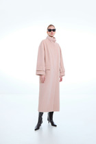 Это короткое приталенное пальто с баской подчеркнет вашу женственность. В контрасте с драпом-воротник и пояс из матовой кожи создают яркий и выразительный образ. По окату втачного рукава заложены две складки, линия плеча заужена. Отделочные строчки подчеркивают красивую линию рельефов. Состав драпа: 50% шерсть, 20% полиэстер, 30% кашемир. Длина изделия 60 см, длина рукава 67,5 см.