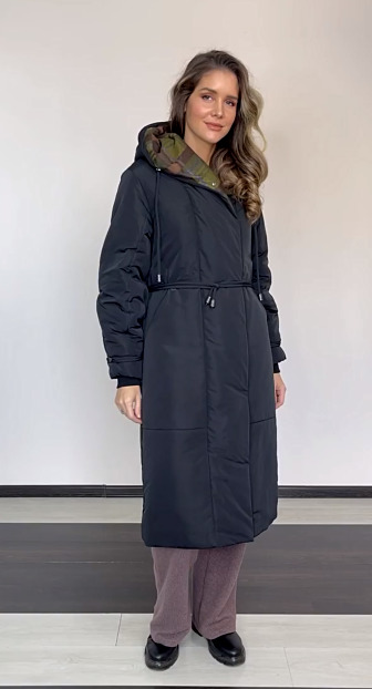 Утепленное, лаконичное пальто прямого силуэта из полуматовой ткани с водоотталкивающей пропиткой и суперсовременным утеплителем ТермМакс. За дополнительную защиту от непогоды отвечает капюшон с цельнокроенной стойкой со шнурком, регулирующим объем капюшона. Капюшон и подборта отделаны тканью-компаньоном, в тон которой подобран подклад. Модель с застежкой на молнию и кнопки, рукавом с декоративной патой и трикотажной манжетой, помогающей регулировать длину рукава. Пояс-шнур в комплекте.