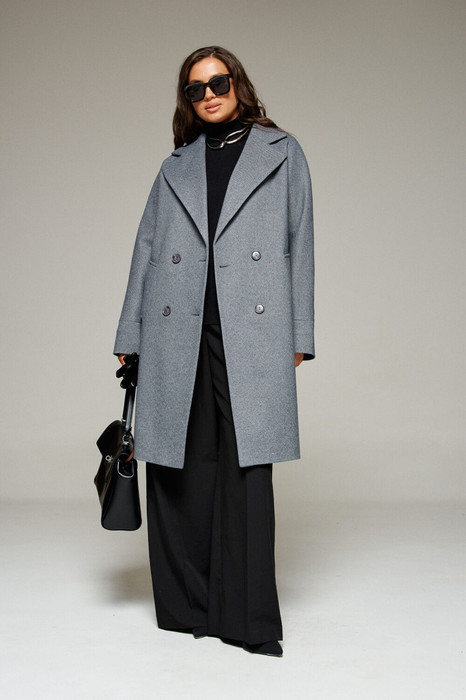Пальто выполнено из шерстяной ткани, которая обеспечивает теплоизоляцию и защиту от ветра и влаги, подходит для межсезонья и теплой зимы. Двубортное, на подкладке. Изделие рассчитано на температурный режим от +10 до -5 градусов. Модель прямого силуэта, покроя «летучая мышь»; предназначена для повседневного использования.