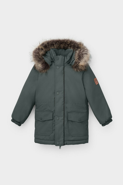 • Съемный капюшон на кнопках с отстегивающимся искусственным мехом и эластичным шнурком