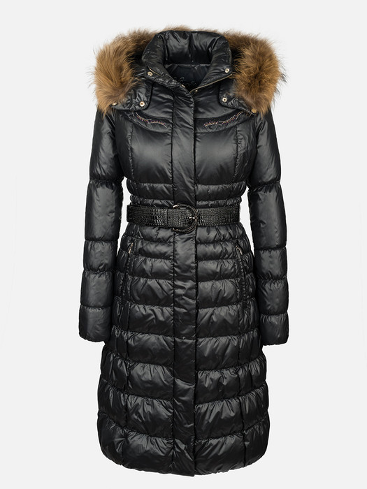 Пальто женское утеп. пух. VIOLA (черный) енот натуральный