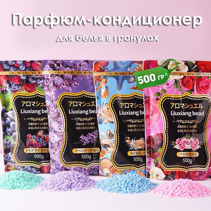 Освежающие, ароматические гранулы подходят для смягчения одежды, постельного белья, нижнего белья, детской одежды.Кондиционер-освежитель для ручной и машинной стирки избавляет ваши вещи от неприятных запахов, обеспечивает свежесть на длительное время. Гранулы обладают стойким ароматом.Концентрированная формула обеспечивает экономичное использование, добавляя свежесть и мягкость каждому милиметру одежды. Быстро растворяются при воздействии воды и при низких температурах без остатка.Походит для всех видов ткани и цветных и белых вещей. Отлично сочетается со всем видами порошков.Гранулы используются не вместо порошка, а в дополнении к нему. Способ применения: При стирке одежды в машинке положите нужное количество гранул непосредственно в барабан и добавьте ваше средство для стирки. Так же вы можете после основной стирки загрузить белье в режим полоскания и добавить средство. Тогда эффект от использования будет в разы лучше!При стирке одежды вручную, сначала выстирайте одежду, далее замочите вещи в ароматических бусинах в течение десяти минут, после необходимо прополоскать её, затем высушить, чтобы сохранить стойкий аромат. Чтобы добиться легкого аромата добавьте 1-2 мерные ложки на 3 кг. белья или 3 ложки на полную загрузку 5 кг. белья. Если хотите более выразительный аромат, добавьте больше на 1-2 ложки средства. Помните, количество можно менять в зависимости от ваших предпочтений.