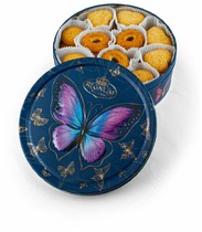 А вы уже видели новинку от ГК "Сладкая сказка" - сдобное печенье Regnum "Бабочки" в большой подарочной жестяной банке? Если хотите удивить близкого человека, порадовать родителей, поднять настроение второй половинке, то вам точно стоит присмотреться к этому печенью. Во-первых, внутри сразу три разных рецептуры, каждой из которых соответствует своя уникальная форма: сдобное печенье в сахарной обсыпке в виде сердца, сдобное печенье с карамельным яблоком в виде круга, сдобное печенье с измельчённой тыквой и натуральным розмарином в виде цветов. Во-вторых, расставаться со стильной банкой после того, как печенье закончится, совсем не захочется. Её можно использовать для хранения разных мелочей, домашней выпечки или конфет. А большая и объёмная бабочка в золотом ореоле, окружённая маленькими матово-золотыми бабочками на глубоком тёмно-синем фоне, будет напоминать о подарке и поднимать настроение. Печенье производится на собственной российской фабрике и не содержит трансжиров.