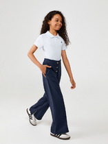 Широкие прямые брюки для мальчика из футера плотностью 310 гр/кв.м. Карманы в боковых швах. На задней половинке брюк справа накладной карман. Пояс из основной ткани, внутри широкий эластик, прострочен двумя строчками. В поясе внутренняя утяжка на шнурок.