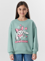 Джемпер из мягкого хлопкового трикотажа с небольшим содержанием эластана, полуприлегающего силуэта, с отложным круглым воротником на цельнокроеной стойке. По центру переда планка с декоративными пуговицами, вдоль которой застрочены вертикальные складки и кружево с фестонным краем. По спинке застежка на две пуговицы. С коротким объёмным рукавом на подкладе из тонкой сетки. По низу рукав присборен на шпульную резину.