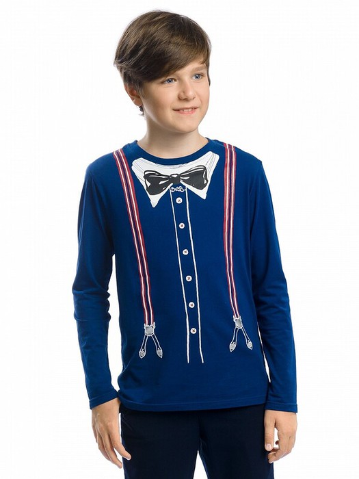 Джемпер для мальчиков. Классический джемпер с интересным принтом, имитирующим подтяжки с серебряным блеском и бабочку с белым воротничком.