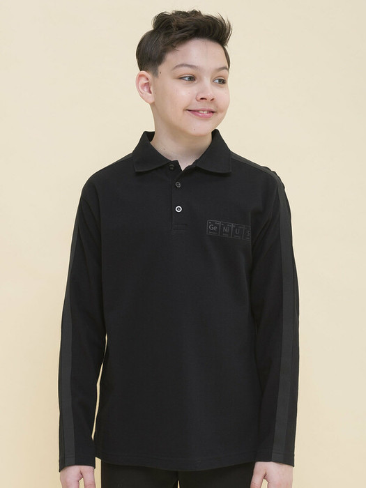 Джемпер-поло из 100% хлопка для мальчика. Натуральный состав ткани обеспечивает изделию мягкость, воздухопроницаемость и комфортность. Воротник из рибаны — долго не теряет форму и устойчив к частым стиркам. Модель декорирована лампасами вдоль плечевых швов и рукавов — один из актуальных трендов. На груди оригинальный силиконовый принт в виде элементов таблицы Менделеева, который устойчив к частым стиркам. Джемпер застёгивается на 3 пуговицы под горловиной — удобно надевать и снимать. Стильный вариант школьной формы для мальчиков.