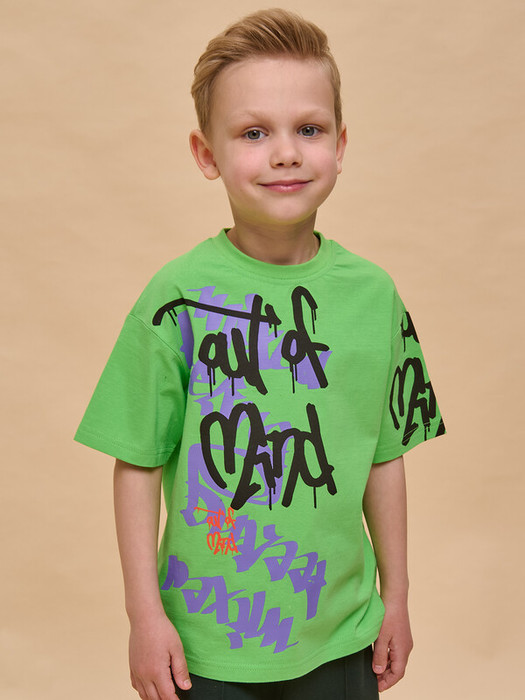 Яркая футболка для мальчиков. Комфортный джемпер оверсайз-силуэта не будет стеснять движений ребёнка. Майка с удлинёнными широкими рукавами — актуальный тренд сезона. Небольшой вырез горловины отделан широкой эластичной рибаной (ткань в рубчик) — она долго не теряет форму, при этом ребёнку удобно надевать и снимать футболку. За изделием легко ухаживать. Удлинённая футболка с принтом по переду и на левом рукаве выполнена из 100% качественного хлопка. Майка мягкая, отлично пропускает воздух, давая коже ребёнка дышать. Принты в актуальном стиле граффити эластичные и стойкие — прекрасно переносят многочисленные стирки. Надписи переводятся: «не в себе», «смешанные чувства». Футболка с надписями выполнена в модном желтом цвете. Размерная линейка: 1 (86); 2 (92); 3 (98); 4 (104); 5 (110); 6 (116); 7 (122); 8 (128); 9 (134); 10 (140); 11 (146). Футболка с прикольным принтом подходит как для маленьких мальчиков, так и для подростков. Идеальна для детского сада, спорта, прогулок, отдыха, а также в качестве домашней одежды. Подходит для носки летом, осенью и весной (демисезон), зимой в качестве среднего слоя одежды. Её просто комбинировать с разнообразными брюками и шортами. Оверсайз-футболка для мальчика — замечательный подарок сыну, внуку, племяннику или брату на День рождения и любой другой праздник.